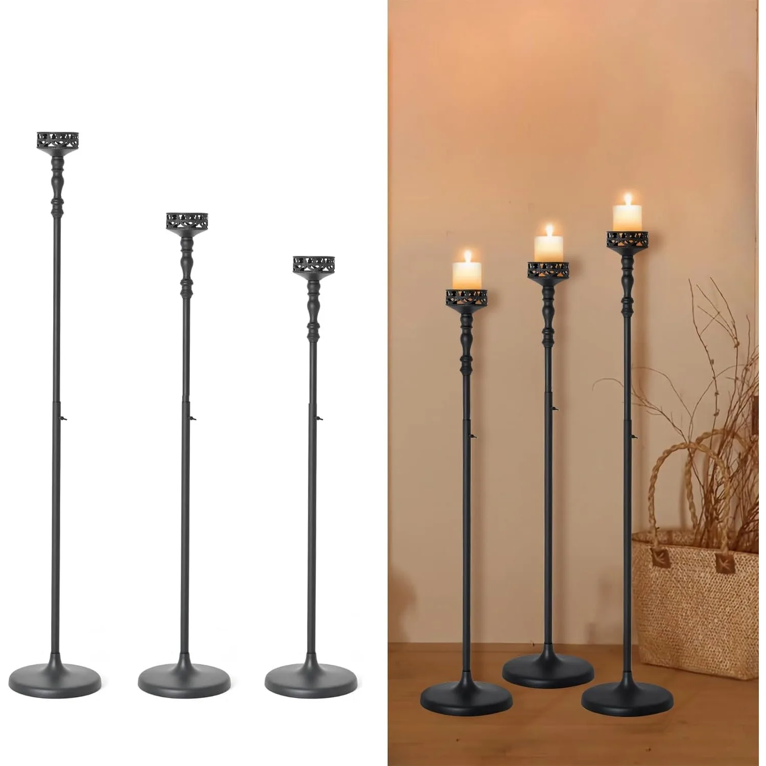 Floor Candle Holder Centerpieces for Table 3Pcs Candle holders Metal Candlestick Set for Wedding Home Ceremony Halloween (Black)