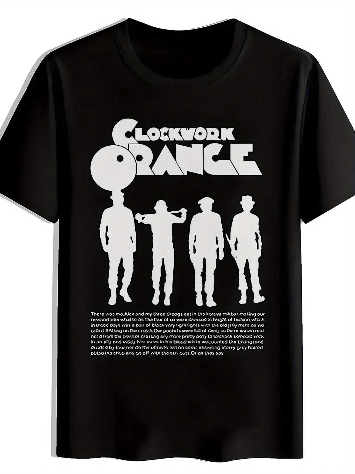 Inform when this item available Men'S Black "Clockwork Orange" Graphic T-Shirt - Retro Rock Band Design, Short Sleeve, Round Neck,