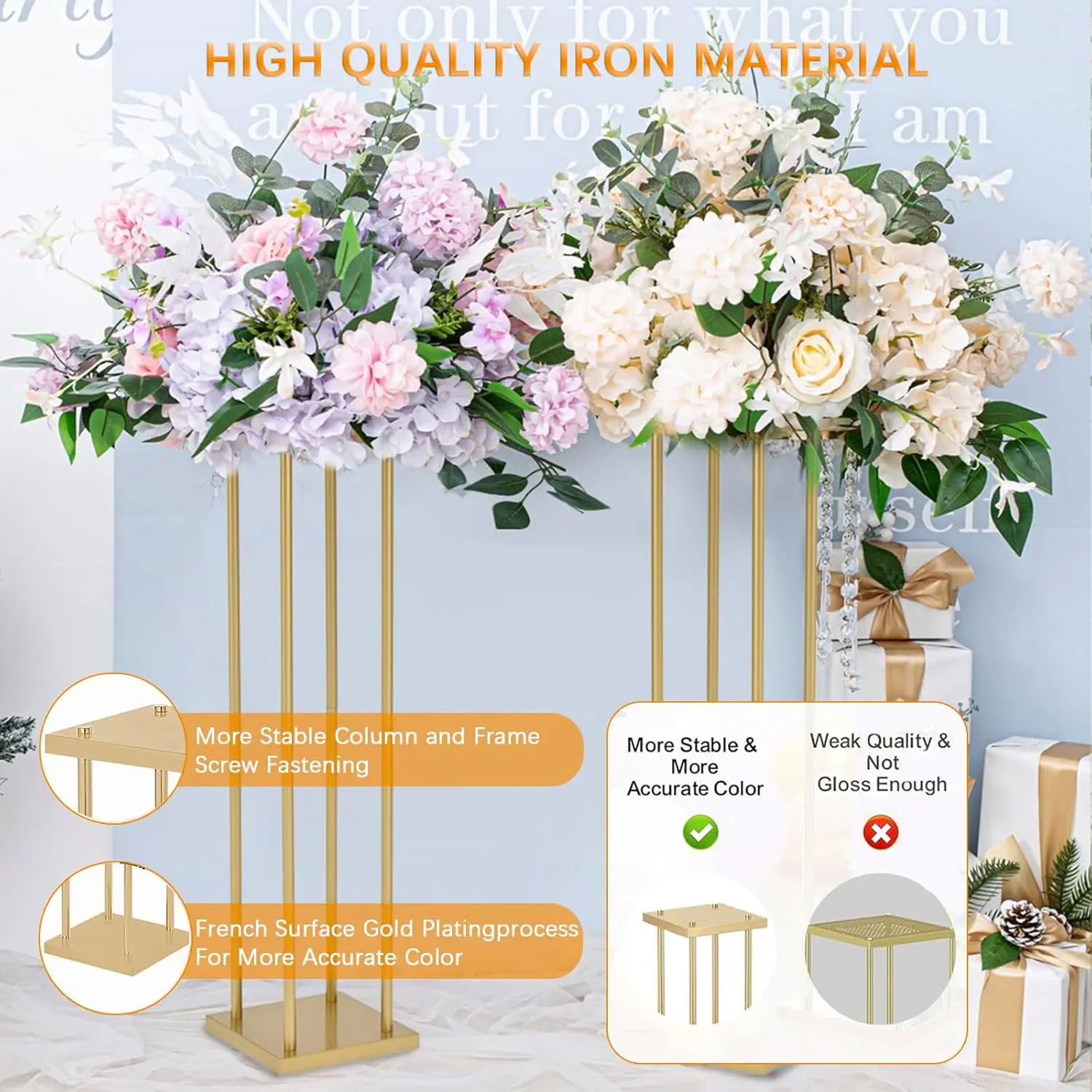 10pcs 31.5inch Rectangular Gold Metal Wedding Flower Stand Vase Column Stand Flower Display Rack for Party Decorations