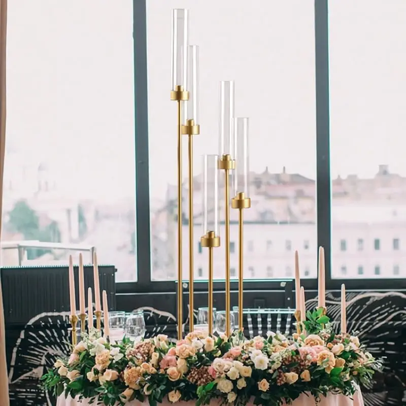 39.4'' Tall Gold Floor Candelabra 8PCS 5 Arm Candle Holder Candle Holder with Acrylic Lampshade for Wedding Birthday Party