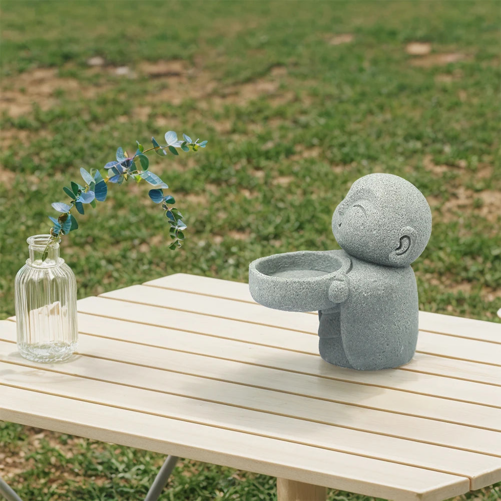 Features: 1. Solid Base Design: The vintage sandstone buddha tealight holder features a solid base, ensuring stability and preventing tipping for a safe and secure experience. 2. Rustic and Exquisite Design: With a rustic and exquisite design, the zen monk statues hold a tealight with a sense of tranquility. The intricate details showcase the beauty of traditional craftsmanship. 3. Craftsmanship Spirit: Embodying the spirit of craftsmanship, each simplistic buddha statue candle holder is a testament to the artisan's dedication and skill, making it a unique and heartfelt creation. 4. Wide Applicability: Designed to hold candles with a diameter of 2.5cm, the buddha sculptures candle holder is suitable for various settings, adding a warm and inviting ambiance to any space. 5. Versatile Use: The resin buddha statues serve multiple purposes, from home tea rooms and guesthouses to creating a serene zen atmosphere. They can even be used as incense lamps for Buddhist offerings, fitting a variety of settings and uses.